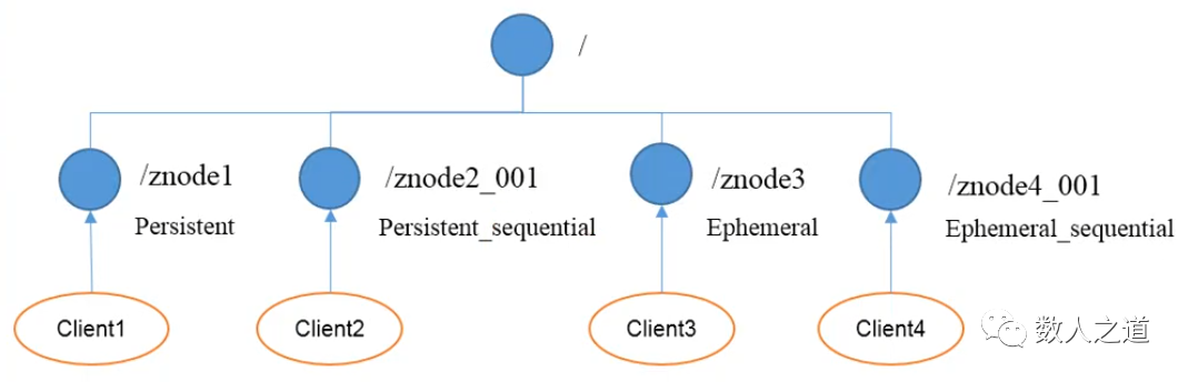 Zookeeper 的目录结构跟 HDFS 类似,整体上可看作一棵树,每个节点称作zNode,每个 zNode 可存储1MB数据,并可通过其路径唯一标识。