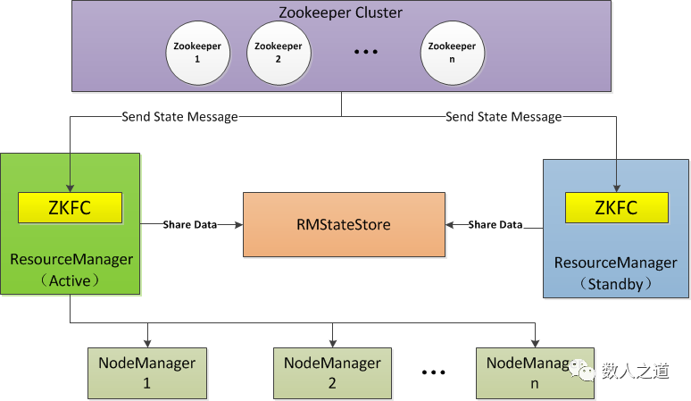 ZKFC 会负责监控 ResourceManager 节点的状态,并将监控状态汇报 Zookeeper.