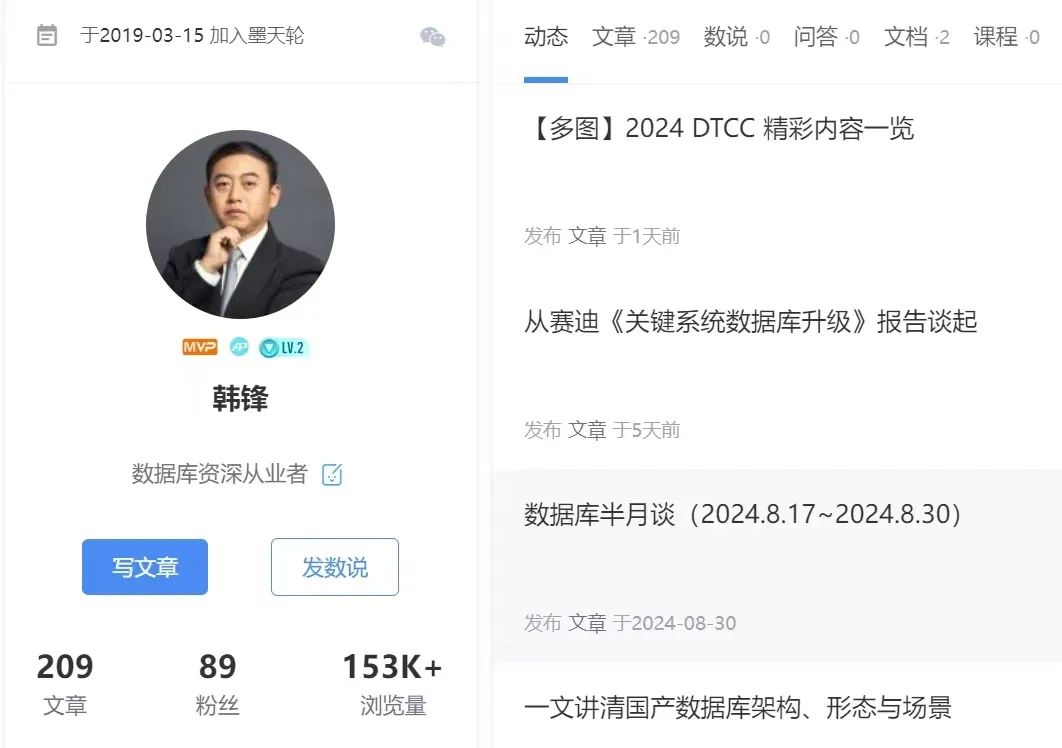 在个人荣誉上,今年收获不多,只是在年中得到墨天轮MVP的称号,算是一个安慰奖了。