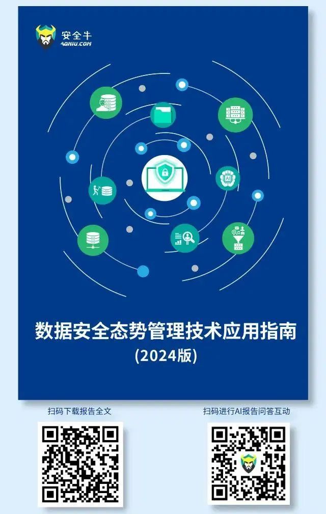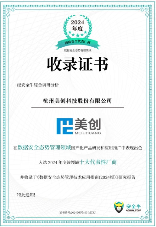 12月26日,安全牛发布《数据安全态势管理技术应用指南(2024版)》报告,美创科技凭新一代 数据安全管理平台(DSC)产品综合能力,入选“数据安全态势感知领域十大代表性厂商”,并在报告中获收录与推荐。