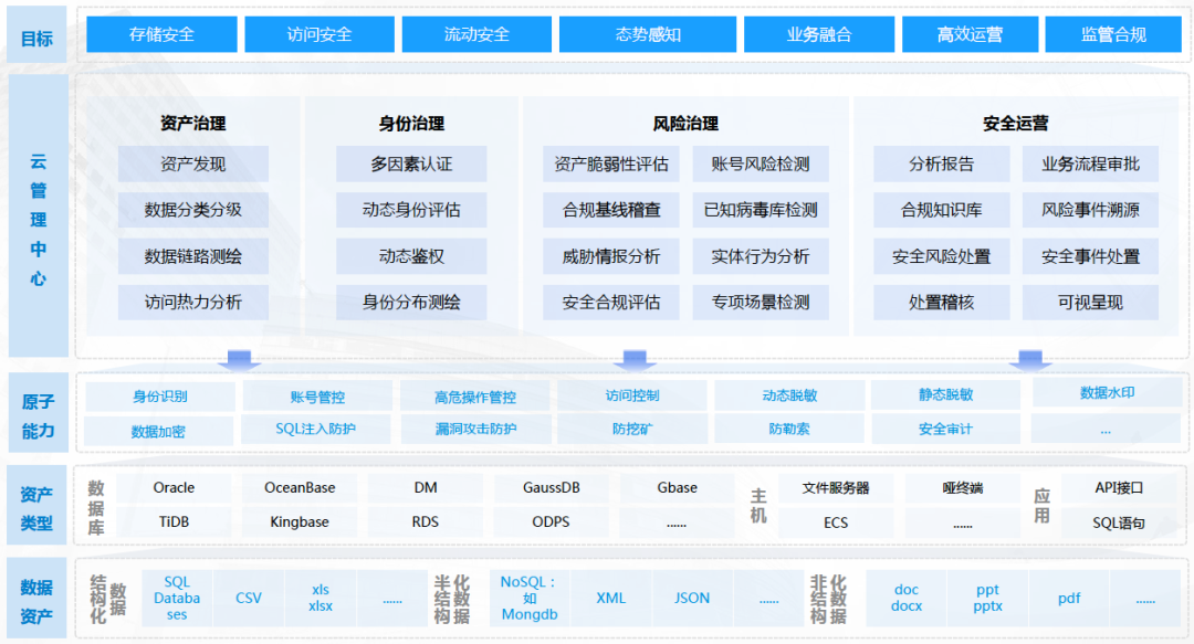 主要功能:统一资产管理、统一身份治理、全局风险监测与治理、安全合规检查、全局数据安全态势感知等。