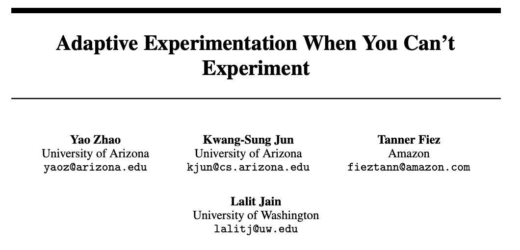 https://www.amazon.science/publications/adaptive-experimentation-when-you-cant-experiment