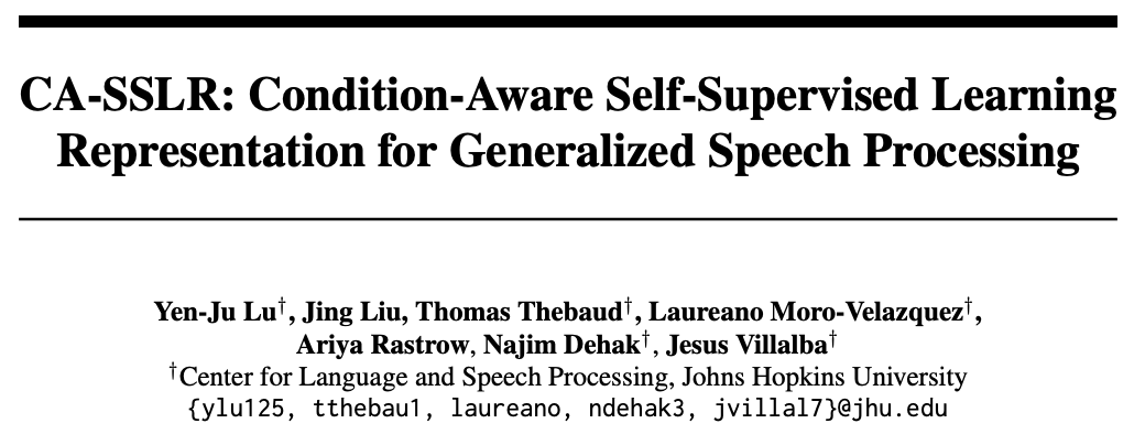 https://www.amazon.science/publications/ca-sslr-condition-aware-self-supervised-learning-representation-for-generalized-speech-processing