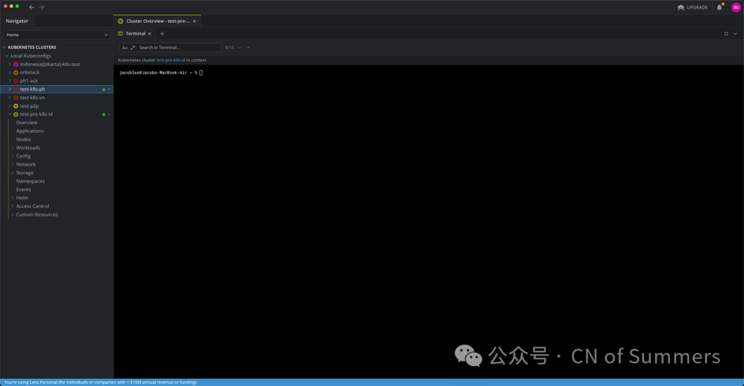 因为集群都托管在 AKS 上面,所有操作都在 Lens