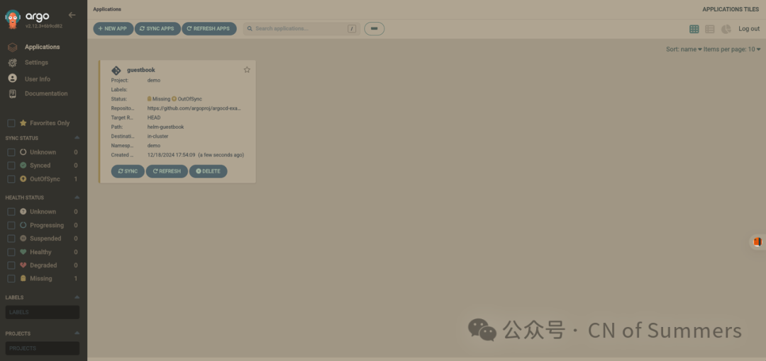2024-12-18T17:59:59+08:00 apps Deployment demo guestbook-helm-guestbook OutOfSync Missing deployment.apps/guestbook-helm-guestbook created