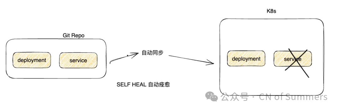 • SELF HEAL:自动痊愈,强制以 Git Repo 状态为准,手动在环境中修改不会生效。