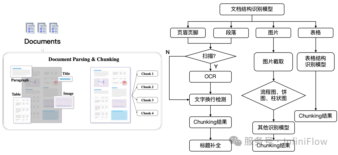 其中之一就是针对朴素 RAG 系统只提供基于文本的 Text Chunking 工具,RAGFlow 引入了针对非结构化数据进行 Semantic Chunking 的步骤,从而保证数据的入口质量。具体做法就是采用专门训练的模型来解析文档布局,避免简易的 Text Chunking 工具对不同布局内部数据的干扰。随后,开源社区利用模型来解析各种文档的工具越来越多,这种做法逐渐深入人心。