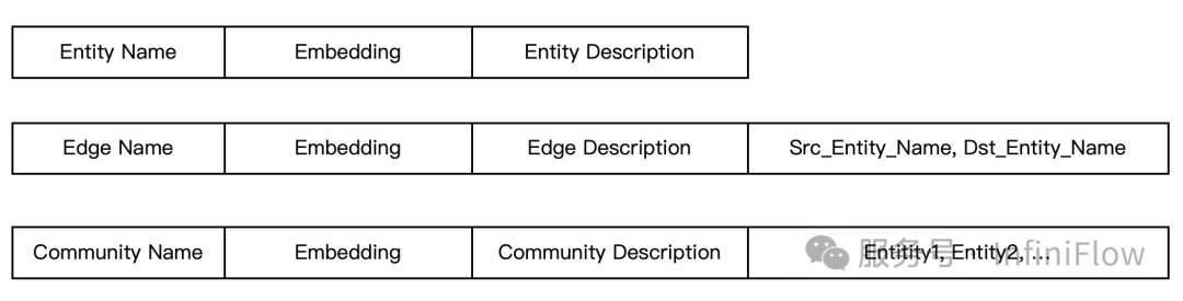 从以上数据 Schema 也可以看出,这些数据只需要再增加一个类型字段,就可以连同原始的文本 Chunk 一起保存在同一张表,这就是把 GraphRAG 和 RAG 结合的 HybridRAG 【参考22】。显然,采用一个具备丰富索引能力的数据库,可以极大降低 GraphRAG 落地的工程难度,即便是诸如 KG-Retriever,Mixture-of-PageRanks 等各类改变图结构的工作,也可以通过调整索引格式以及增加特定索引的搜索方式,方便地支持。这其实也是我们从零来实现这样一个专门服务 RAG 的数据库的初衷之一。