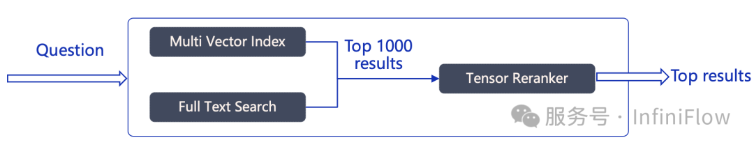 整个检索过程如下图所示:可以看到,它需要数据库不仅支持基于张量的重排序,还需要在向量检索阶段,支持多向量索引。这些结构,在我们的 Infinity 数据库,都已经做好了准备。