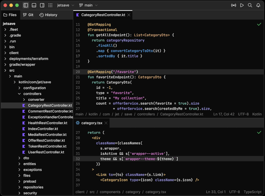 Fleet 是一款快捷的轻量级文本编辑器,可以满足快速浏览和编辑代码的需求。它在几秒钟内即可启动,为我们立即开始工作,并且它还可以轻松转换为 IDE,IntelliJ 代码处理引擎与编辑器本身分开运行。