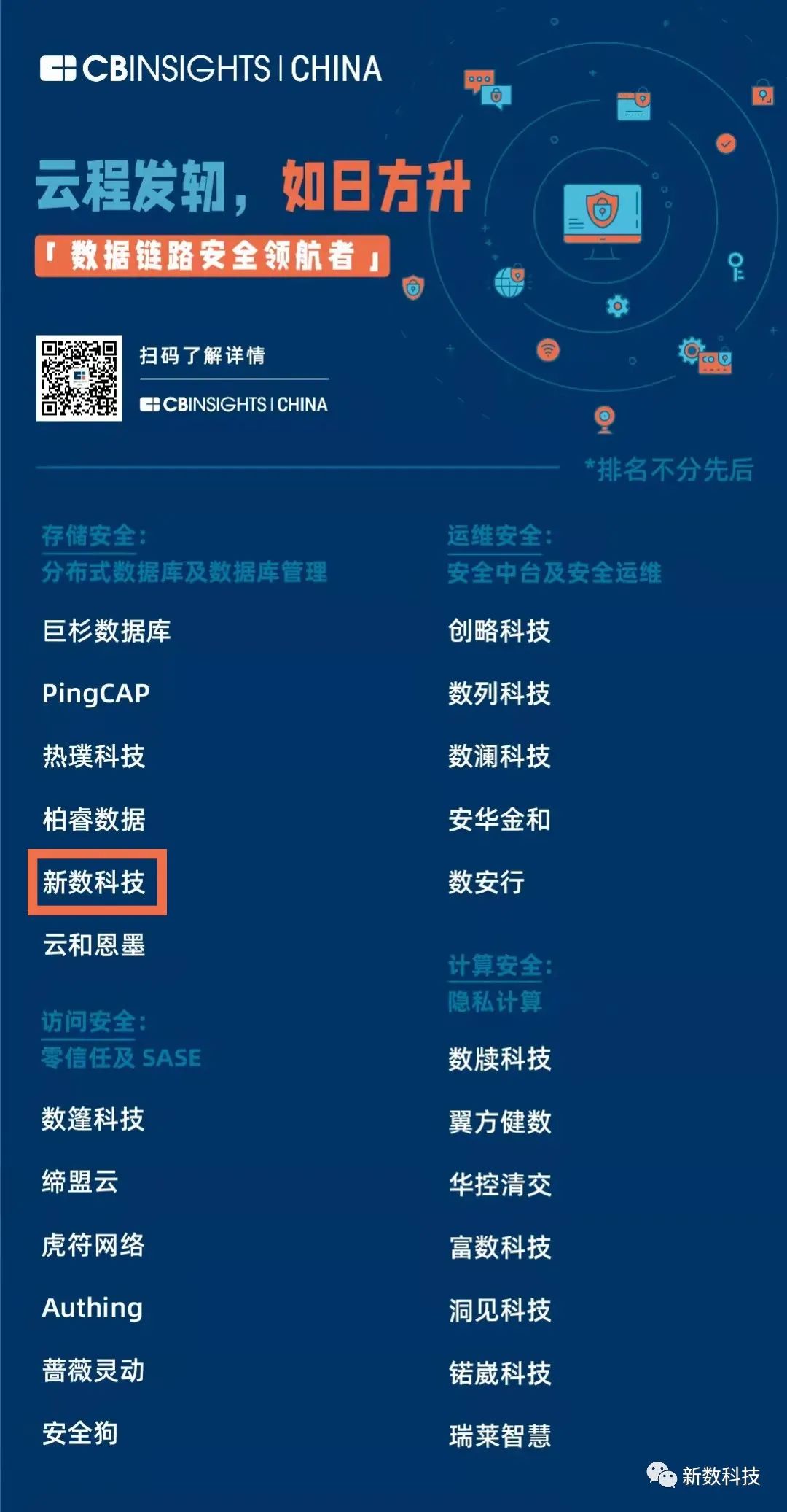日前,全球知名市场研究分析机构CB Insights中国发布了「数据链路安全领航者」榜单。凭借在业内领先的一体化数据库云管理dbPaaS平台和数据库安全管控平台等产品布局,新数科技入选该榜单,在数据库管理和安全领域的技术实力和行业地位再获证明。