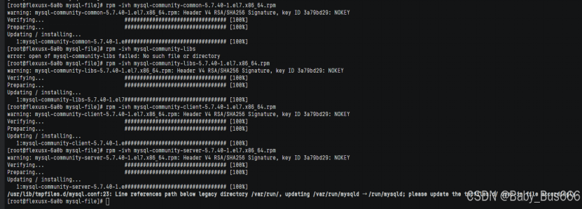 使用 rpm -ivh 包名 安装组件,在文件所属的文件夹下 使用命令分别依次执行,最后的结果如图所示: