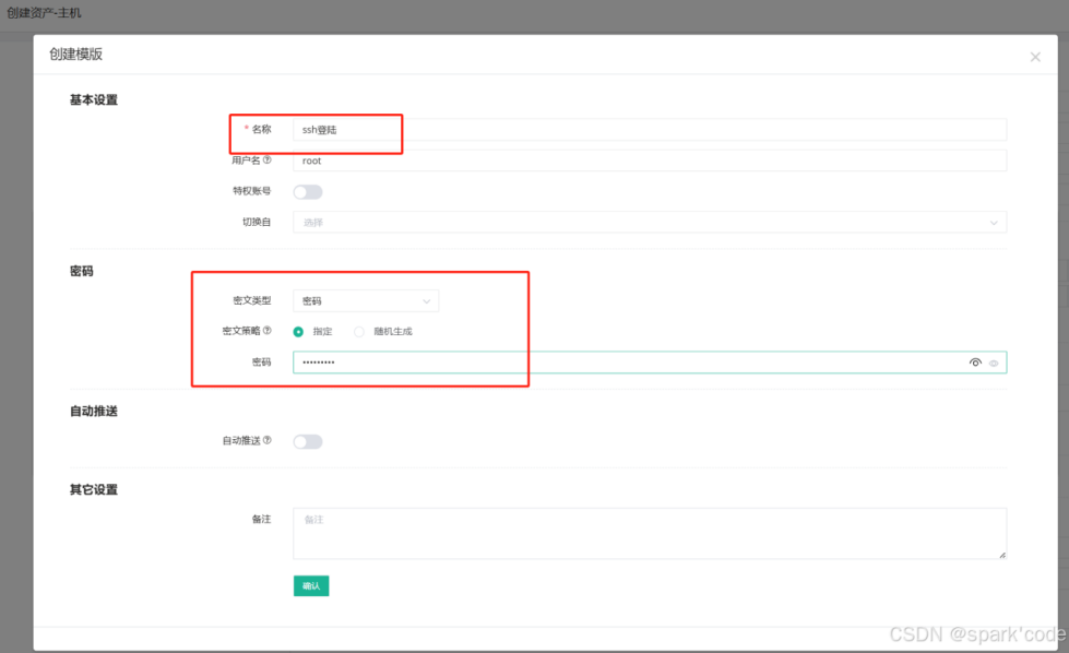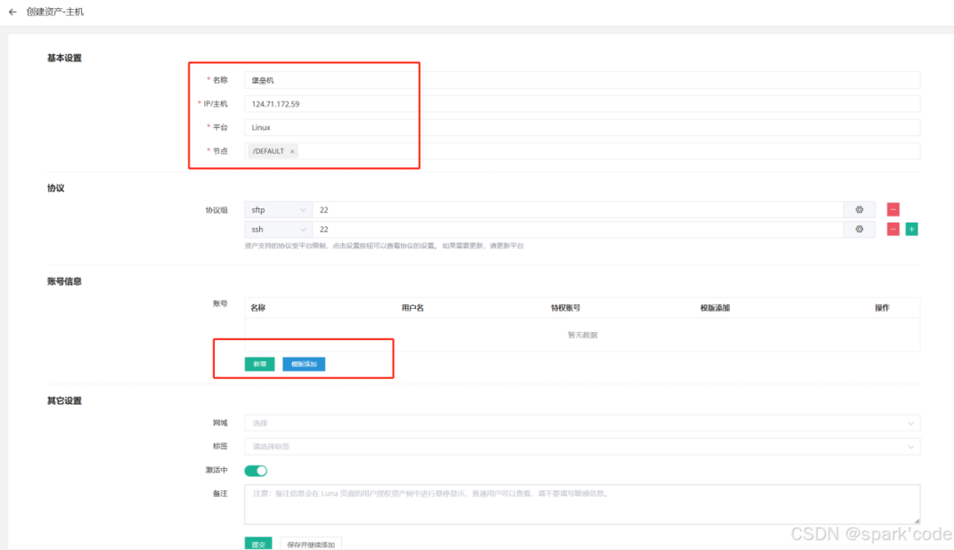 填写基本信息和账号信息,账号信息就是 ssh 的用户名和密码。