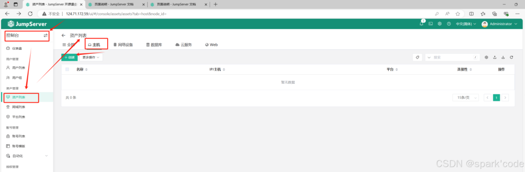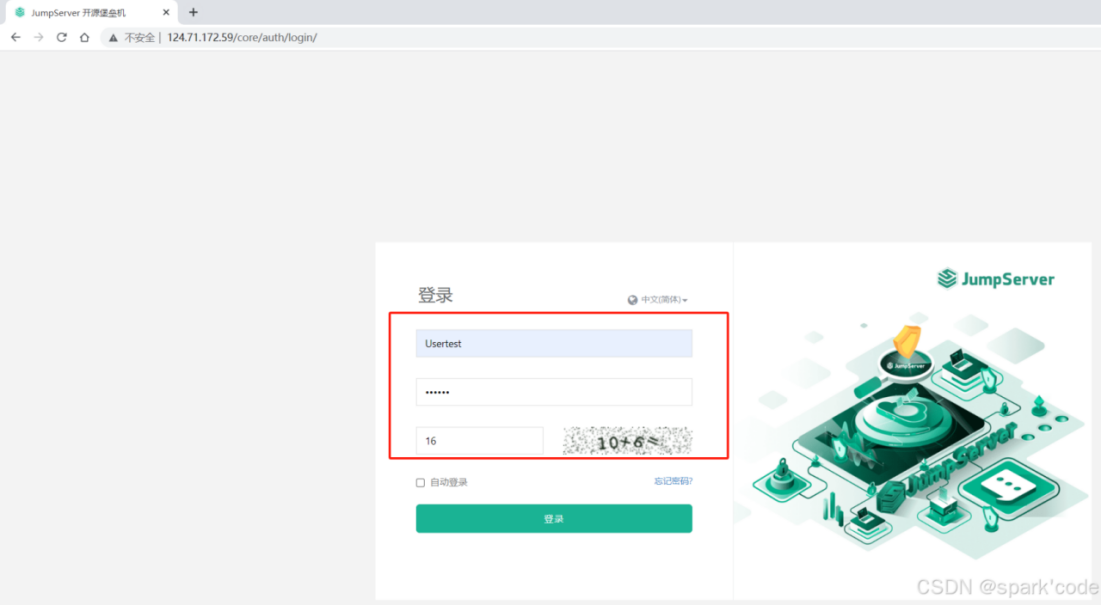 地址: http://<JumpServer 服务器 IP 地址>:<服务运行端口>