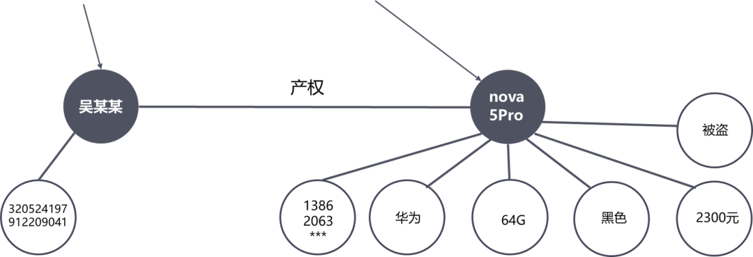 将每个案件首通过中文分词,词性标注、实体识别等技术形成构建一个知识图谱,然后通过关联多个案件的知识图谱,来为公安案件侦破提供更多线索。例如:对于手机丢失的警情数据我被盗的手机是一部华为Nova5pro,内存是64G,黑色。手机号为13862063,当时我花了2300元买的。我|被盗|的|手机|是|一|部|华为|Nova5pro|,|内存|是|64|G|,|黑色|。|手机号|为|13862063***||当时|我|花|了|2300|元|买|的|。|