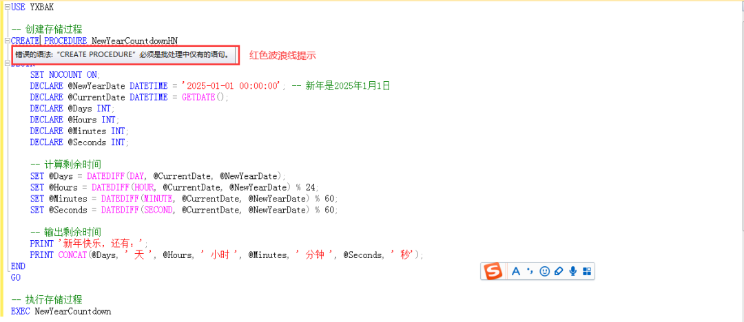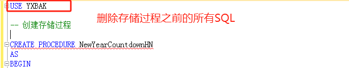 是把新创建的存储过程语句前执行完的语句删除,只保留当前存储过程