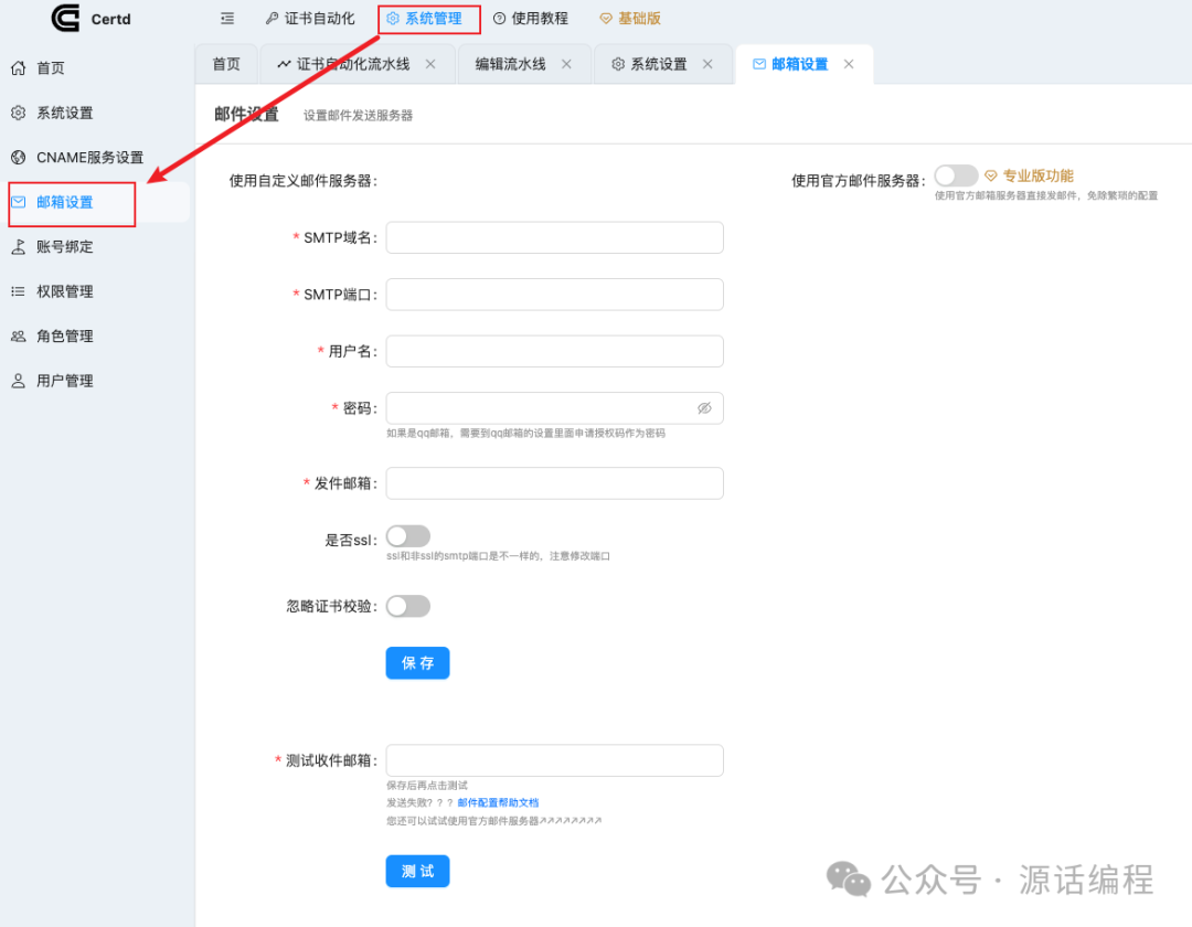 如需使用邮件通知可以配置添加通知,需要先配置邮件服务器