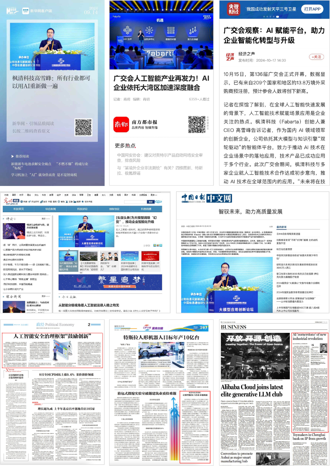 今年以来,枫清科技以卓越的表现和创新成就,赢得了众多权威媒体的广泛关注和积极报道。新华社、中国日报、央视经济之声、光明网、环球网、中国经济网、中国网、北京商报、南方日报、羊城晚报、广州日报、南方都市报、 21 世纪经济报道、新浪财经、凤凰网、钛媒体、东方财富网、和讯网、同花顺财经、证券之星、中国经济新闻网、InfoQ、51CTO、数据猿、齐鲁晚报、东南网、云南网等 30 多家媒体对枫清的技术成就与发展给予了高度评价和深入报道。不仅充分展现了枫清科技在行业内的领先地位,也彰显了枫清科技在科技创新和社会责任方面所做出的杰出贡献。