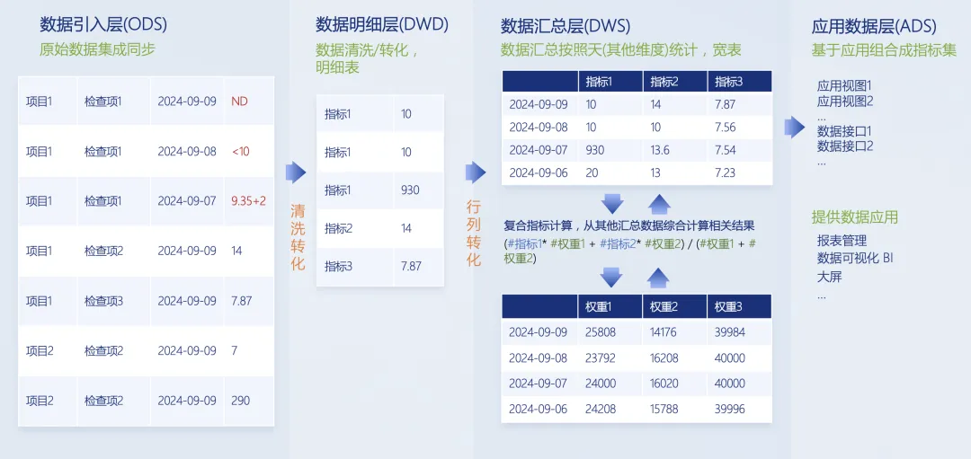 - 一些关键指标需要结合外部数据进行加权计算。团队通过复合指标模型完成计算,并将结果更新至汇总层。