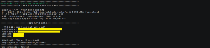 配置完成后,重启宝塔面板,浏览器登陆宝塔面板的外网地址,即可看到宝塔面板登录页面。输入宝塔面板初始化的账号密码,即可进入宝塔面板控制页面。