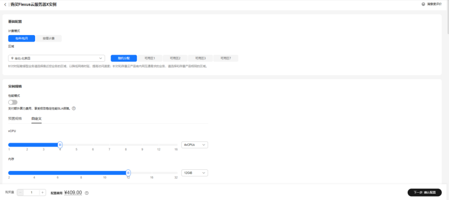 选择计费模式、区域以及自己所需的实例规格,这里我选择了 4 核 12G。