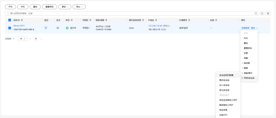 依次点击更多->网络/安全组->安全组规则配置即可进行安全组的规则配置���