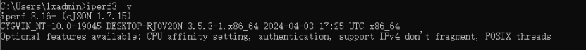 在 cmd 命令行中,使用 iperf3 -v 查看是否安装成功。