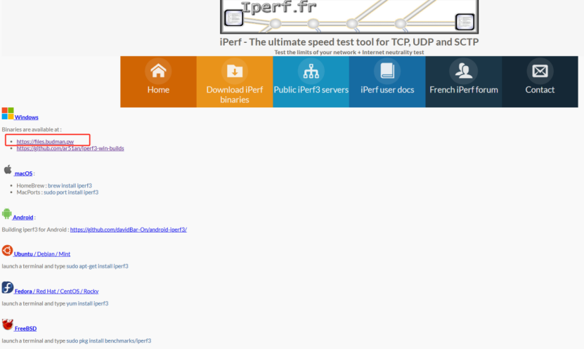 打开 Iperf 官方下载网页:https://iperf.fr/iperf-download.php,