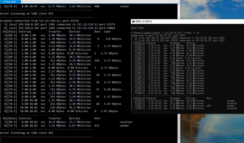 iperf3 -c [华为云 X 实例 IP 地址] --bidir -t 30