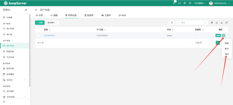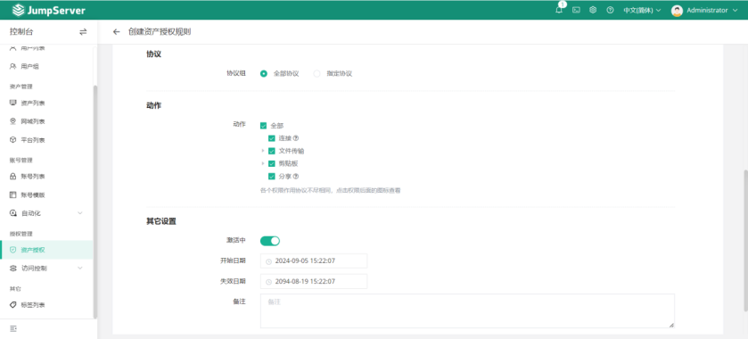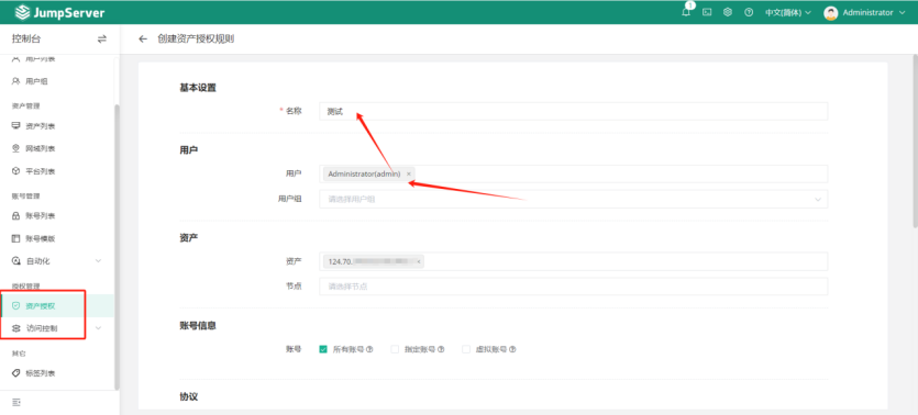 依次点击授权管理-资产授权-输出名称,选择用户组以及想要赋权的资产