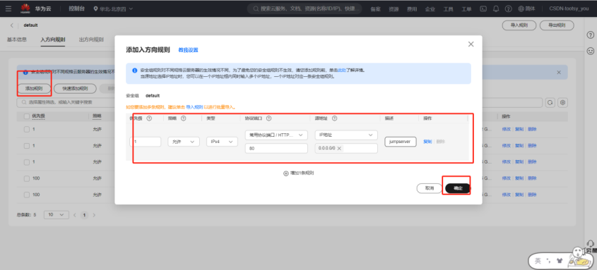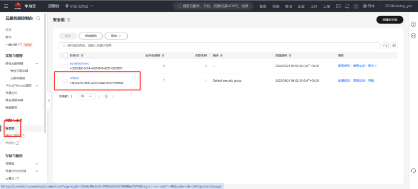我这里是华为云,需要开放安全组,访问华为云控制台https://console.huaweicloud.com/console/?region=cn-north-4#/home,点击 ECS