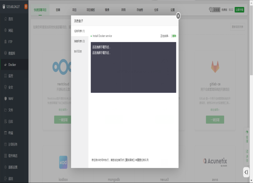 宝塔安装 Docker 直接点击左侧的 Docker 就会提示你,让你下载