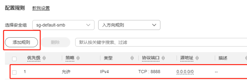 访问应用需开通 8888 端口、访问 MySQL 数据库需开通 3306 端口等