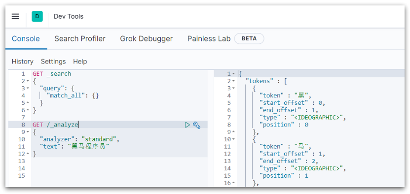 这个界面中可以编写 DSL 来操作 elasticsearch。并且对 DSL 语句有自动补全功能