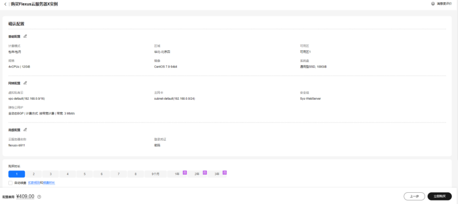 来到 Flexus 云服务申请页面:https://www.huaweicloud.com/product/flexus-x.html,点击购买按钮,进入 Flexus 云服务 X 实例配置页面