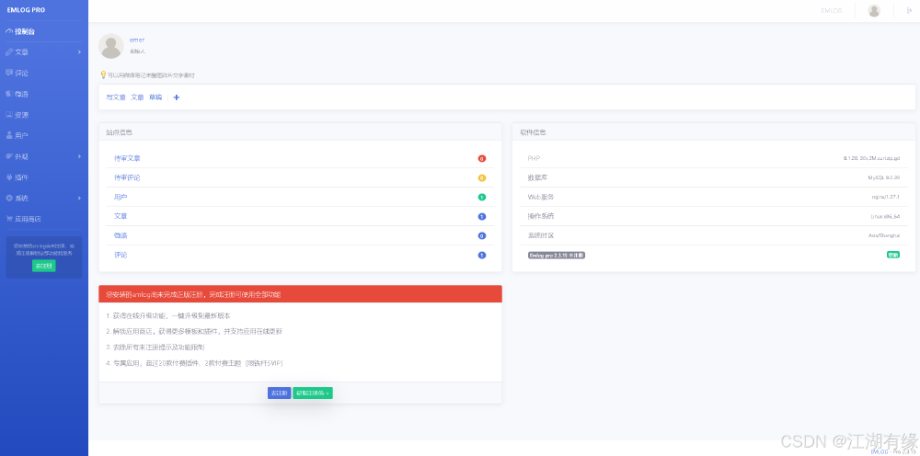 emlog 是一款快速稳定的轻量级博客及 CMS 建站系统,旨在打造一个好用的云端内容管理系统。