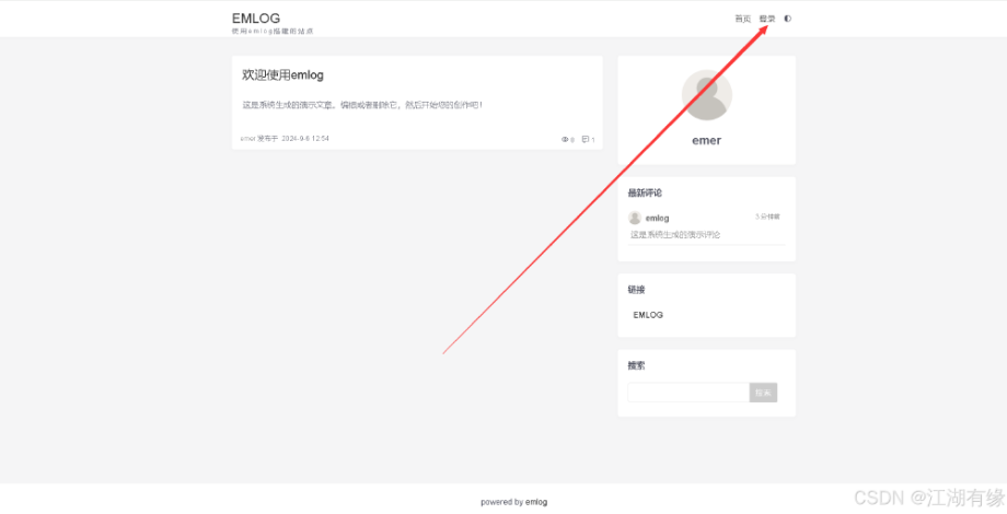 点击右上角登录,进入 emlog 后台管理的登录页面。