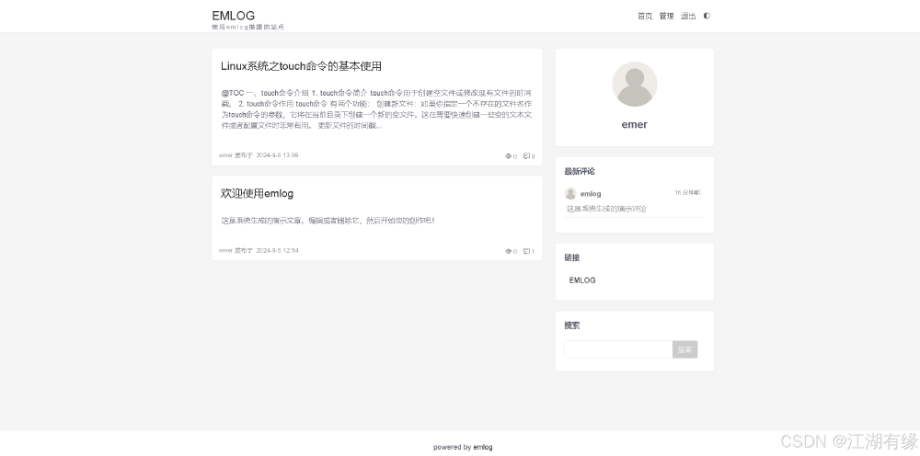 我们回到 emlog 的前台首页,可以看到文章效果。