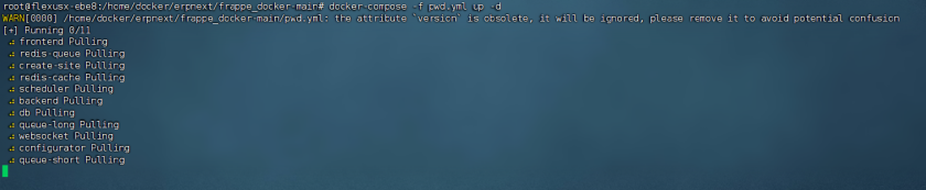 [+] Running 17/17 ✔ Network frappe_docker-main_default Created 0.0s ✔ Volume "frappe_docker-main_redis-queue-data" Created 0.0s ✔ Volume "frappe_docker-main_db-data" Created 0.0s ✔ Volume "frappe_docker-main_sites" Created 0.0s ✔ Volume "frappe_docker-main_logs" Created 0.0s ✔ Volume "frappe_docker-main_redis-cache-data" Created 0.0s ✔ Container frappe_docker-main-redis-queue-1 Started 2.8s ✔ Container frappe_docker-main-websocket-1 Started 2.7s ✔ Container frappe_docker-main-db-1 Started 3.1s ✔ Container frappe_docker-main-create-site-1 Started 2.8s ✔ Container frappe_docker-main-queue-short-1 Started 2.9s ✔ Container frappe_docker-main-scheduler-1 Started 3.1s ✔ Container frappe_docker-main-configurator-1 Started 2.6s ✔ Container frappe_docker-main-queue-long-1 Started 3.1s ✔ Container frappe_docker-main-backend-1 Started 2.9s ✔ Container frappe_docker-main-redis-cache-1 Started 2.8s ✔ Container frappe_docker-main-frontend-1 Started 1.0sroot@flexusx-ebe8:/home/docker/erpnext/frappe_docker-main#