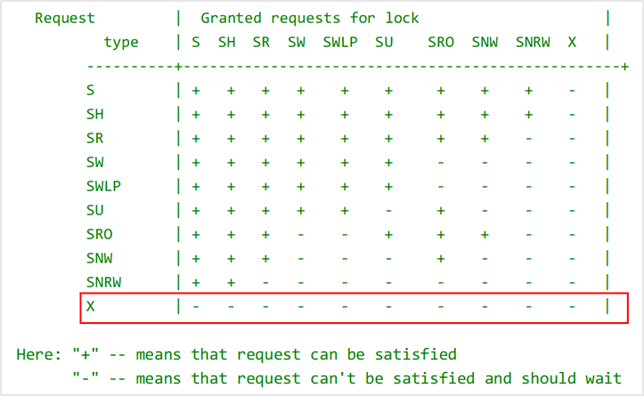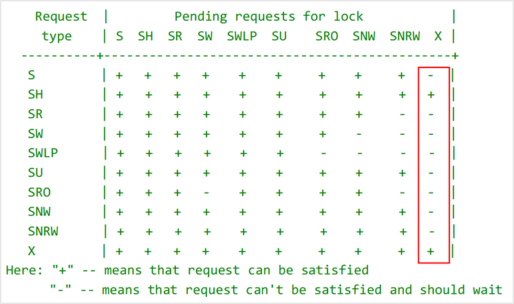 TaurusDB支持的MDL锁有MDL_SHARED(S)、MDL_SHARED_READ(SR)、MDL_SHARED_WRITE(SW)、MDL-EXCLUSIVE(X)等11种类型,其中,MDL-X锁具有最高的优先级和排他性【2】。对任何MDL加锁申请,需要满足两个条件,才能被授予锁: