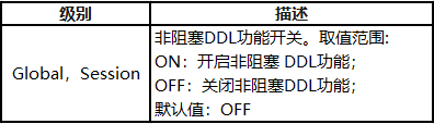 (1)非阻塞DDL特性,仅支持ALTER TABLE、RENAME TABLE、CREATE INDEX、DROP INDEX和OPTIMIZE TABLE语句。