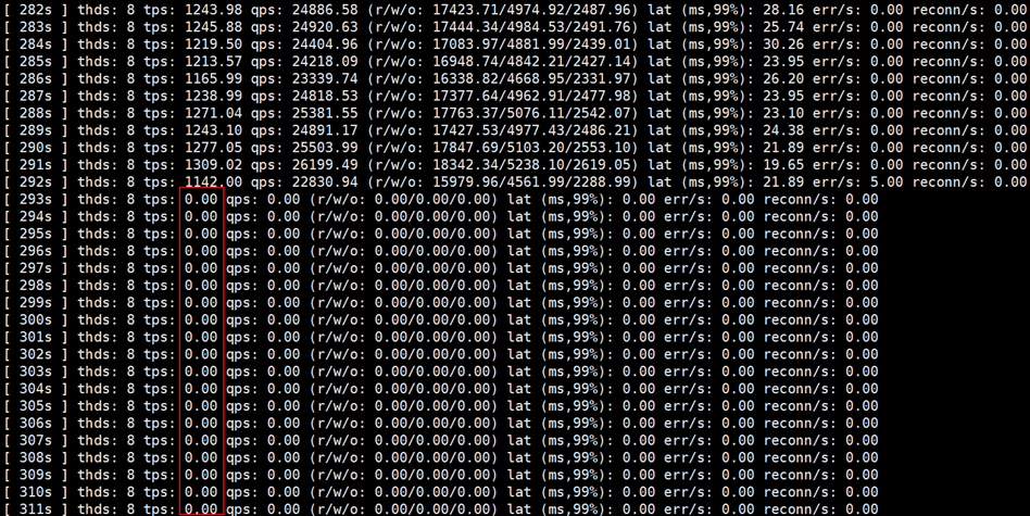 图 4 关闭非阻塞DDL场景下,业务TPS掉零