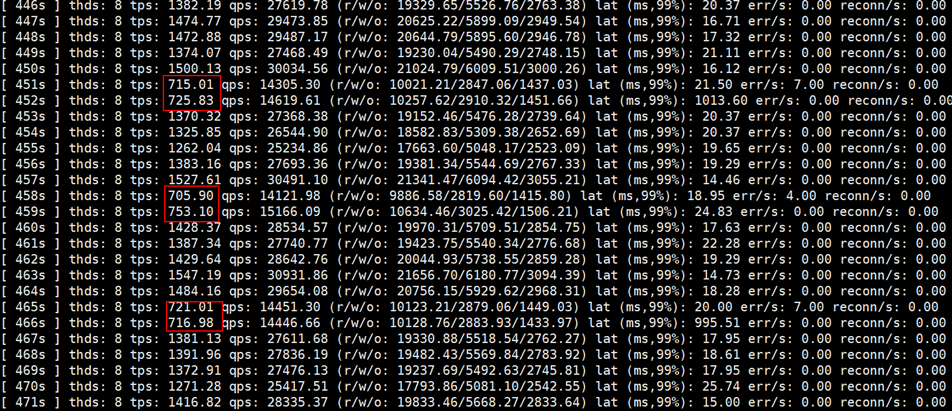 ./oltp_read_write.lua --mysql-host="集群地址"--mysql-port="端口号" --mysql-user="用户名"--mysql-password="用户密码" --mysql-db="sbtest"--tables=1 --table-size=1000000 --report-interval=1--percentile=99 --threads=8 --time=6000 run