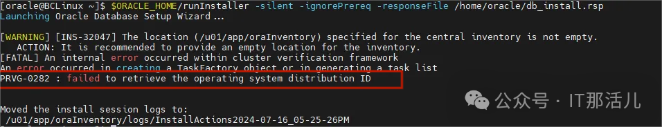 该问题显示无法识别该系统的id,在oracle安装包解压后产生文件。