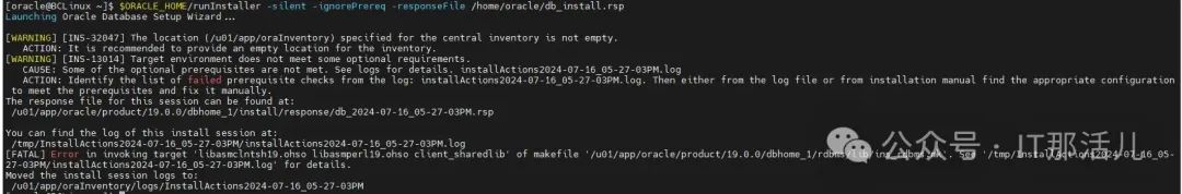1)静默启动安装脚本时,出现报错缺失libnsl.so.1文件