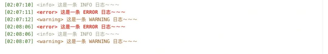 <日志类型>,后面的是日志内容。(日志类型:info 、success、error、warning。)