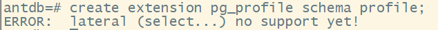 说明:创建pg_profile扩展报错,分布式集群暂不支持lateral (select…)语法。后续尝试修改pg_profile–4.6.sql中包含lateral语法的语句以支持安装此拓展。