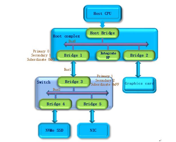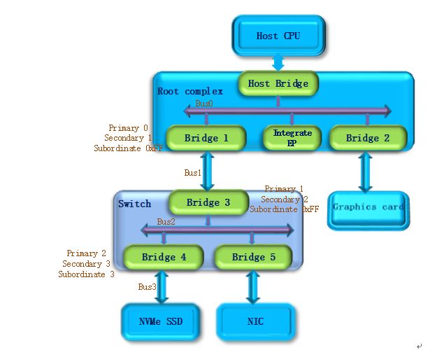 至此,挂在PCIe总线上的所有设备都被扫描到,枚举过程结束,Host通过这一过程获得了一个完整的PCIe设备拓扑结构。