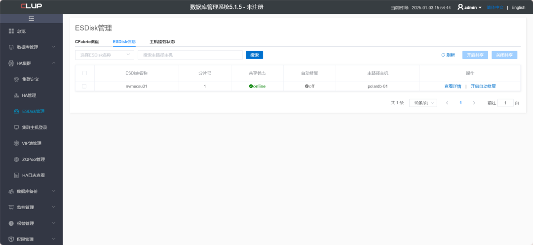 在ESDisk信息界面中可以看到共享磁盘的共享情况,首次共享建议先取消共享,再共享