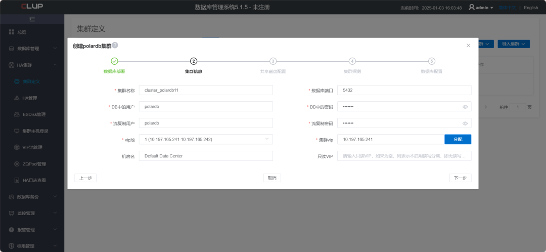 剩下的步骤点击下一步即可。最后点击确定创建PolarDB共享存储集群